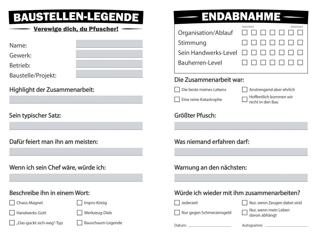 Baustellen-Legenden ist mehr als nur ein Freundebuch: